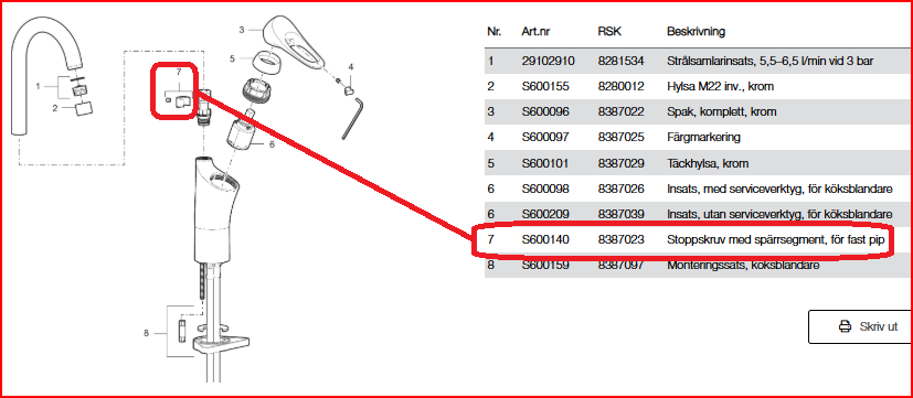 Vi har upptäckt att det har skickats ut spärrsegent för fast pip som saknar hål för låsskruven tillverkat från 2026-01-16. ( Ni ser felaktigt spärrklack längst ned till vänster och riktig till höger)