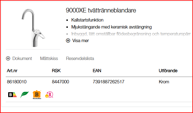 Information 9000XE tvättränneblandare